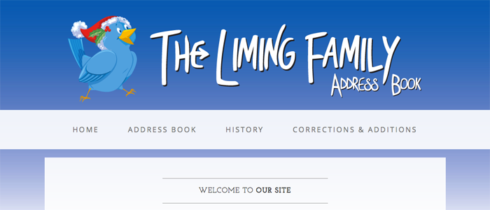 LIMING FAMILY SITE Several years ago, I designed and produced a family address book for my mothers side of the family as she has an extremely large extended family. Since then, we have grown considerably and so has technology. I, in turn, have started to create a website to manage this address book to make it both user friendly and more accessible for everyone.