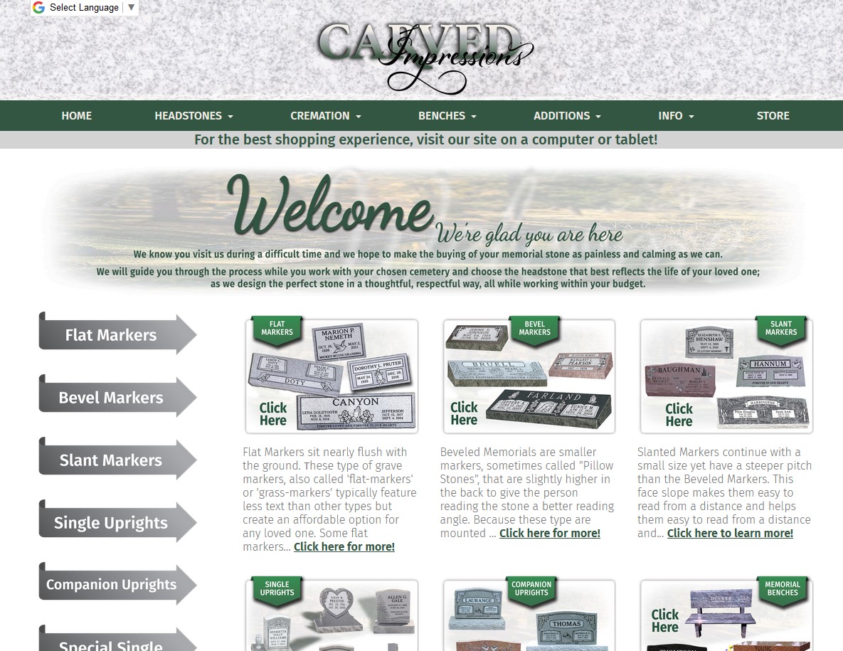 Carved Impressions is a great way to help grieving families memorialize their loved ones with a high quality headstone without breaking the bank. Most monument companies price their stones well beyond 5-7 times what the stone actually costs, but not Carved Impressions. they are able to sell directly from the quarries to the consumer to help keep costs down and help families get more for their money. |