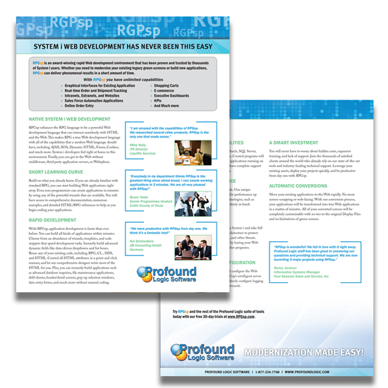 One of several White Papers I created for Profound Logic and profound UI that gave the fantastic reasons users should not only switch their old, out-dated green screens to new web based user interfaces, but why they should choose Profound UI to do so! |